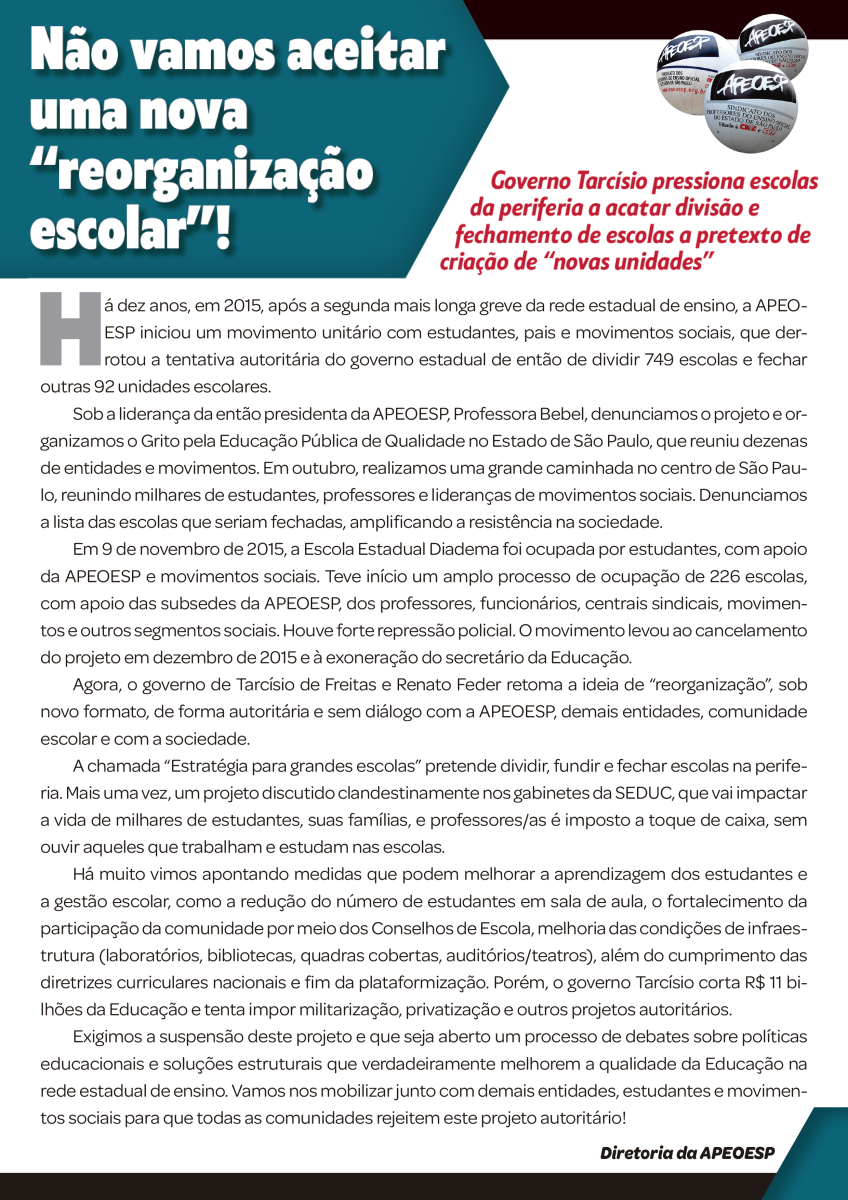 APEOESP - Sindicato dos Professores do Ensino Oficial do Estado de São Paulo - Praça da República, 282 - CEP: 01045-000 - São Paulo SP - Fone: (11) 3350-6000 © Copyright APEOESP 2002/2011