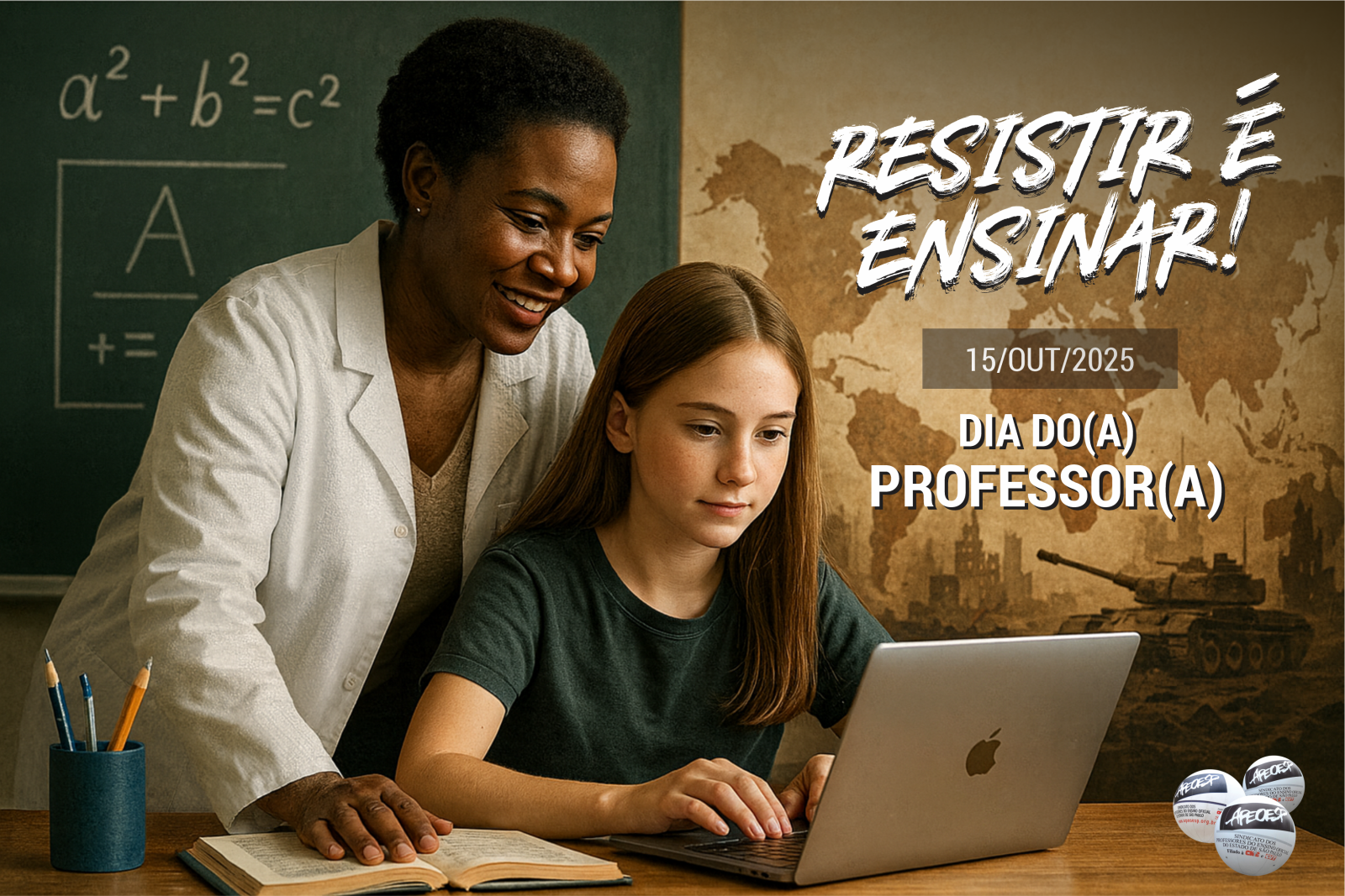 Neste Dia dos Professores, mais do que parabéns, dizemos: resistir é ensinar! Que nossa voz continue ecoando em cada escola, em cada assembleia e em cada luta. Porque enquanto houver injustiça, precarização e ataque à educação, a APEOESP seguirá na trincheira — com coragem, solidariedade e esperança.